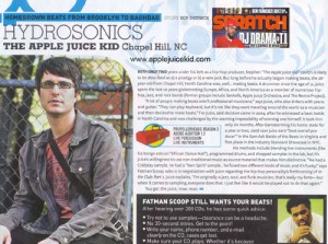 Beat Battle Champion The Apple Juice Kid has taken his road show into the studio. The North Carolina based producer/drummer has formed a group with Camp-Lo’s Geechie Suede and has several co-productions in the works with Ski Beats. During a recent stop in NYC I caught up with the funky percussionist, who I profiled in the print version of Hydrosonics many years ago, and he shared his lessons on working with managers like Tony Perez being an up-and-coming producer in the industry.
