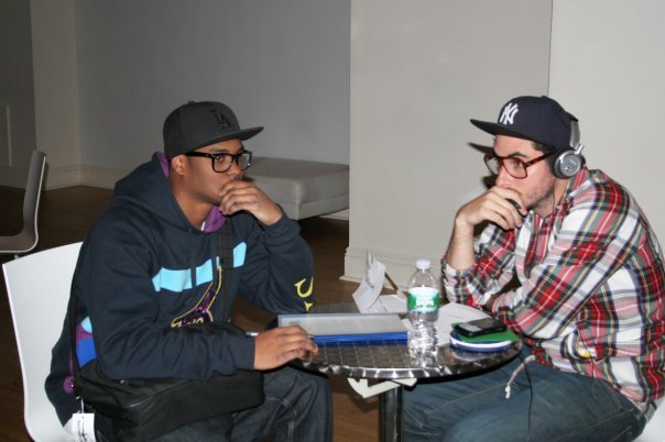 Producer Jon Famous looks on as Ant Rich, A&R Manager of Jive Records listens to his beats at Urban Threshold’s Demo Shopping Conference.