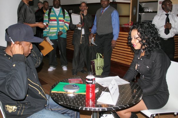 Dre Mckenzie, Director of A&R of G-Unit, evaluates the music package of one of the attendees of Urban Threshold’s Demo Shopping Conference.